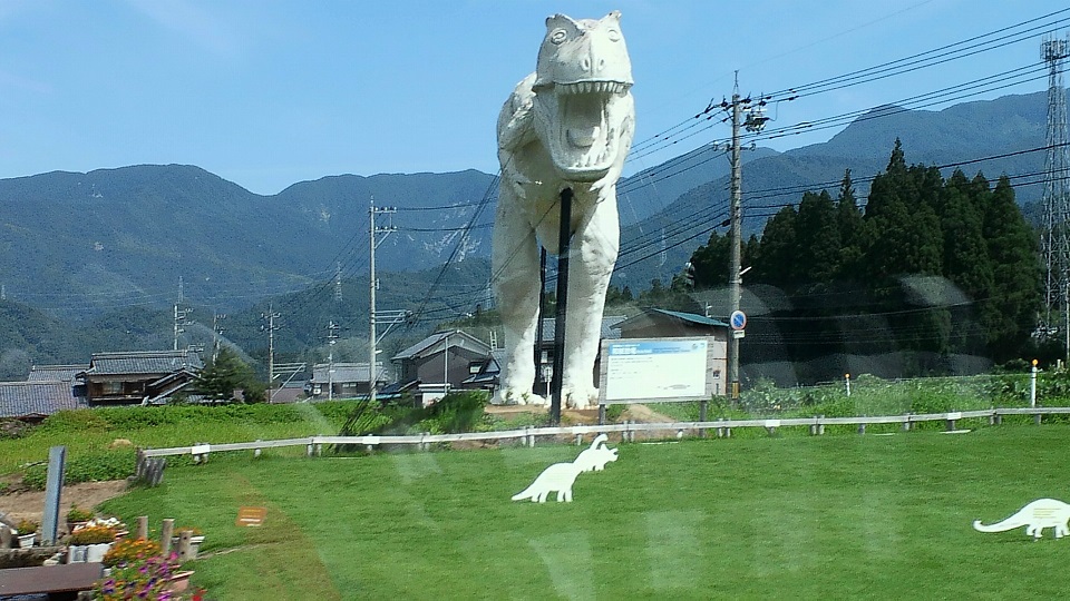 勝山は恐竜の町ということで売り込んでいるようだ。道端にこんな巨大な恐竜が出現する
