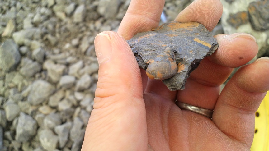 巻貝の化石。貝の化石は結構そこらじゅうあって最後の辺では珍しくもなくなった。