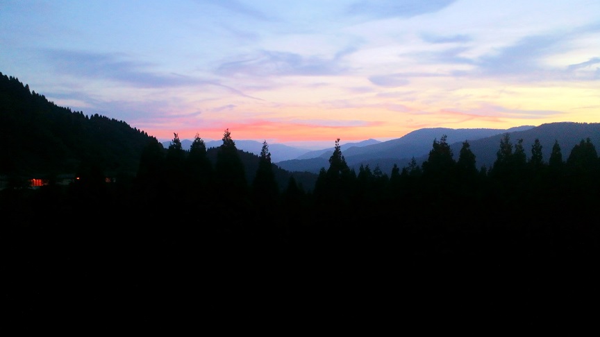 宿から見る夕暮れ。明日も晴れそうだ。