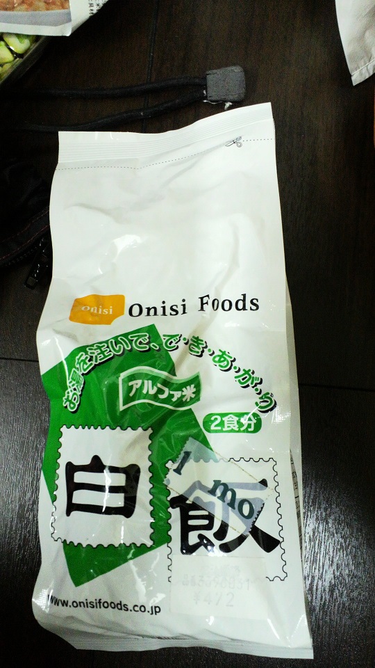 家にストックしてた尾西食品の白米(2食分)。