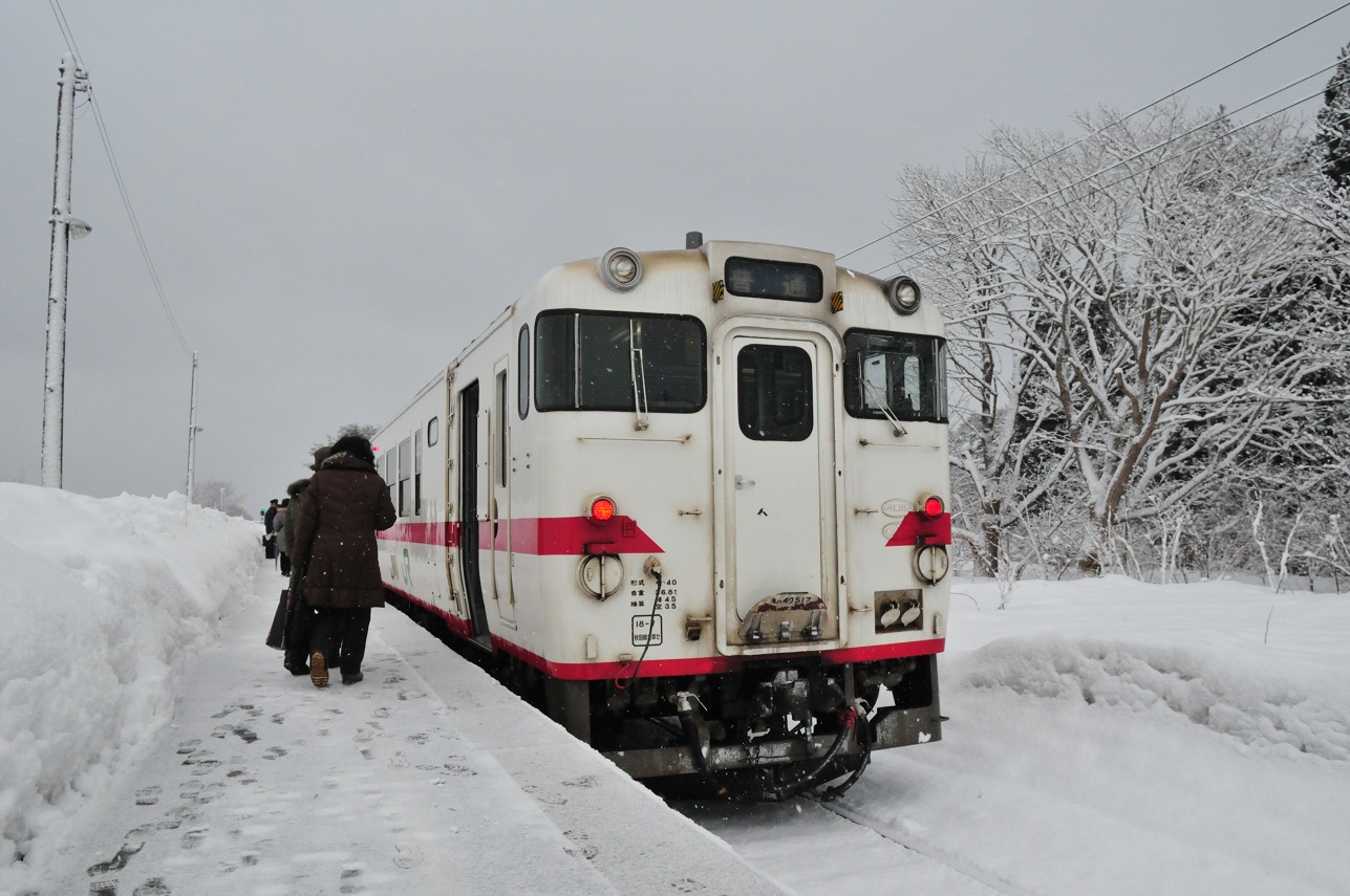 8:33、蟹田に戻る。天気は大荒れ。大雪が降っていて風も強い。本来なら11:22発の三厩行きの列車に乗るまで撮影タイムだったけどこの天候では無理だ。予定していたお立ち台にはいってはいないけどこれはもう無理。行かなくてもわかる。とりあえず今回の旅では夏場のお立ち台は雪が積もると全然ダメということを身をもって体験した。駅から徒歩10分ほどのところに温泉があるようだけどとても歩いて行けるような天候ではない。ここでボーっとしとくのもなんなので青森まで一度引き返すことにする。引き返したところで特に目的はない。時間つぶしのための意味なし乗車だ。しかし列車に乗るのは大好きなので全く苦痛ではない。