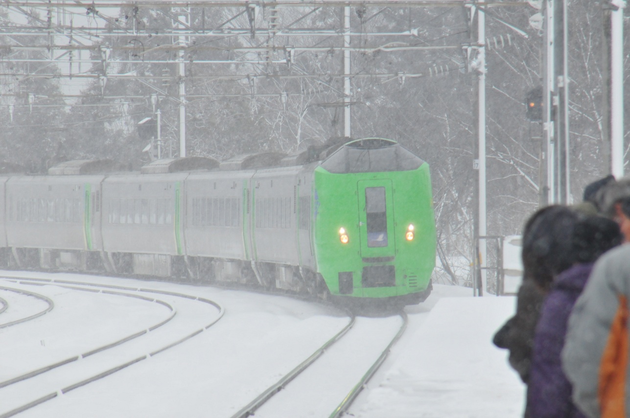 間もなく上野からのあけぼのも到着。撮り鉄野郎もいるにはいるけど大阪や東京のことを思えばかわいいものだ。この大雪でヘッドマークが雪に覆われて見えない。しかしこれは紛れもない上野発の夜行列車、あけぼの号だ。蟹田でお立ち台からの撮影はできなかったけど青森であけぼのと初対面できたのでそれはそれでよかった。