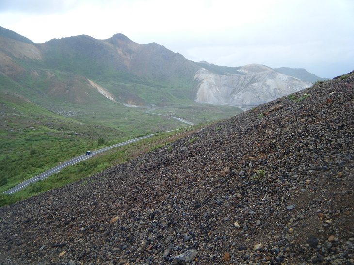 下山途中に撮影。「火山!!!!」って感じの景観ですな。