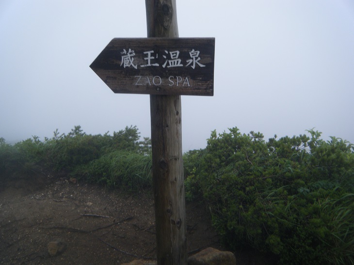 ここまで来ればあとは駅を目指して下るだけである。しかし刈田岳から熊野岳を経てロープウェイの駅に至るこのルート、はっきり言ってハイキングコースである。コースタイムも二時間t足らず。しかしこうも天候が悪いとその二時間が実に長い。ひと気のないガスの中を歩かされて精神的にも疲れたわい。計画段階では「三日目はすぐ終わるな。あとは麓の温泉で半日過ごすか。」なんて余裕をかましていたがやっぱり山をなめてはいかん。晴れてりゃにこにこハイキングでも悪天候なら見せる表情が一変する。いや~改めて勉強になった。