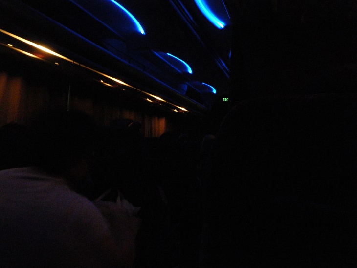 バスの中は贅沢にも3列シート。いや~やっぱ広いわ。何より隣に知らんおっさんがいないというのが一番の解放感である。リクライニングも素晴らしく今宵はしっかり眠れそうである。