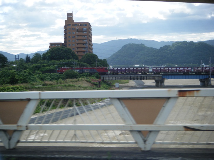 福島駅付近。貨物列車が通過。