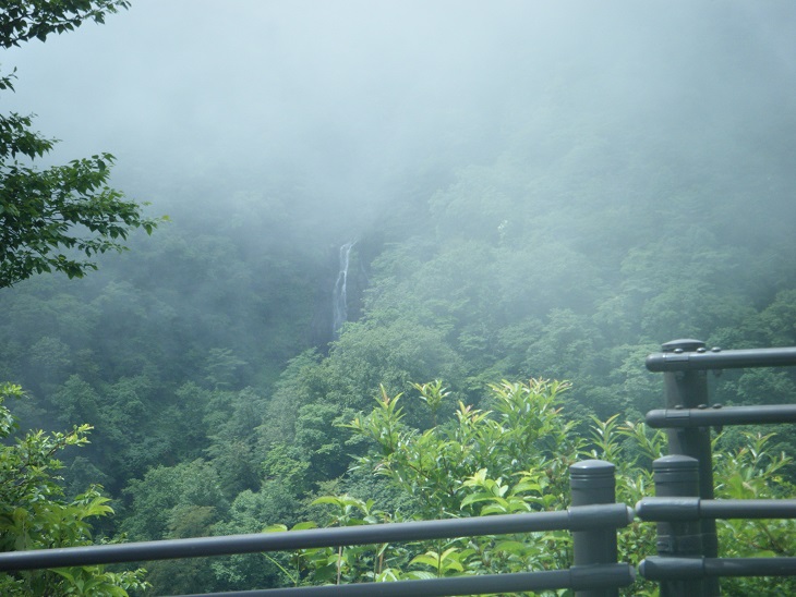 坂の途中で見えた「なんとかの滝」