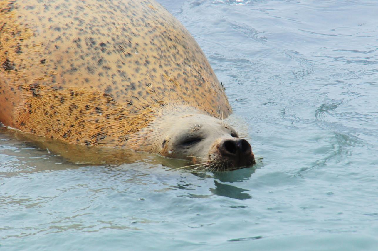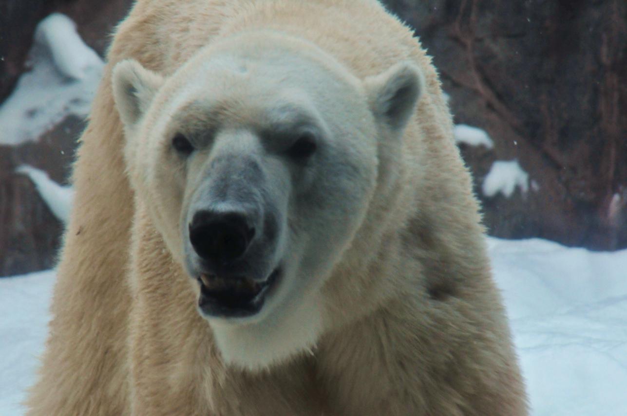 ペンギンのお次はアザラシ館。ちょうど飼育員のお姉さんが餌をやりつつアザラシの説明をしていた。その一帯は人だかりができている。その次はホッキョクグマ館。白熊でけぇー。しかし人が多い。どこの館も混雑している。