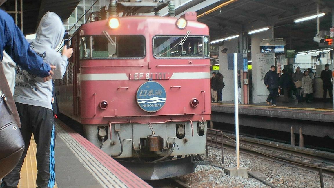 この人たちは向かいのホームに到着していた日本海を撮影していたのだ。なるほど納得だ。しかし反対側のホームから撮ろうとするとここ一番で手前の列車に被られることもあるので要注意だ。