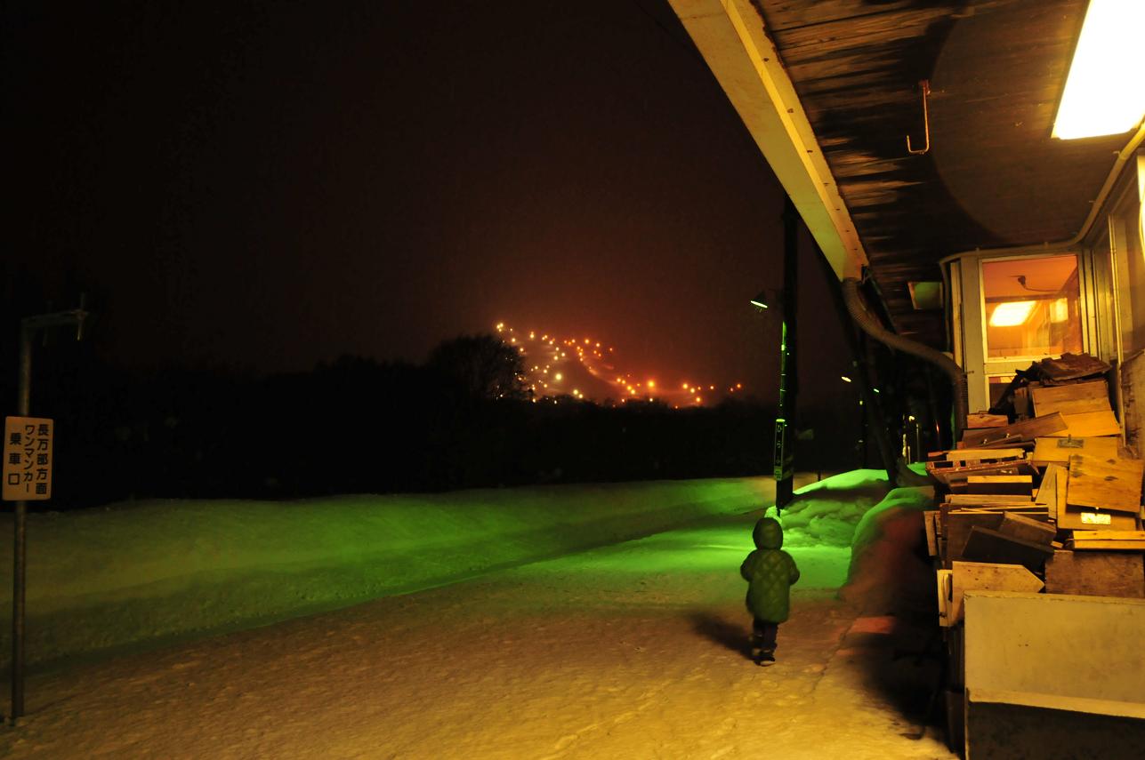 結局ラッセル車は定時の20:41分に通過。どうせまともに撮れないので写真ではなく動画で押さえた。もし20:20分頃に通過していたなら急いで風呂に入って上下の最終列車を撮影しようかと思ってたけどこの時間になってしまっては無理だ。明日に備えてチビを早く寝かさなければならないんだけどこれはいたしかたがない。一度宿に入り僕らの後につかえている人(一緒に食事した京都のおっちゃん)に先に風呂に入ってもらうようにする。