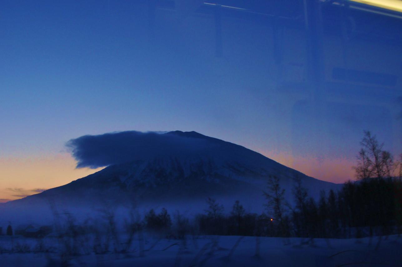 列車はひとまず小樽に向けて雪深い山の中を走る。雪をまとった木々が美しい。僕の座るシートからは正面に羊蹄山が見える。いつかはあそこにも登ることになる。新幹線が完成する前にまたここに戻ってこよう。チビがお腹が空いたというのでさっそく受け取ったばかりの弁当を広げる。焼ウインナーにおにぎりのお弁当だ。これをチビと分け合って食べる。おいしいなぁ~。