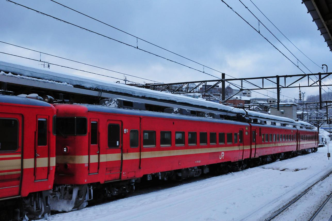 8:18、小樽を出発。車内は多くの乗客で混雑している。小樽を出て2つ目の停車駅、小樽築港ではラッセル車が停車していた。昨夜ホームから見送ったらラッセル車ではなかろうかと思われる。張碓駅・・・つーかもう駅じゃ無くなったので旧張碓駅を見ようと頑張ったけど「ん??今のが張碓だったんかな??」という程度ではっきり分からなかった。銭箱の駅が近づいたころ海に無数の「何か」が浮かんでいることに気付いた。「なんだありゃ?もしかしてアザラシ??」と興奮しながら窓に張り付く。しかしそれはアザラシではなく人であった。詳しく説明すると雪が降りしきる中、サーフィンに興じるサーファーであった。ほんとにびっくりした。つーか見てるだけで
