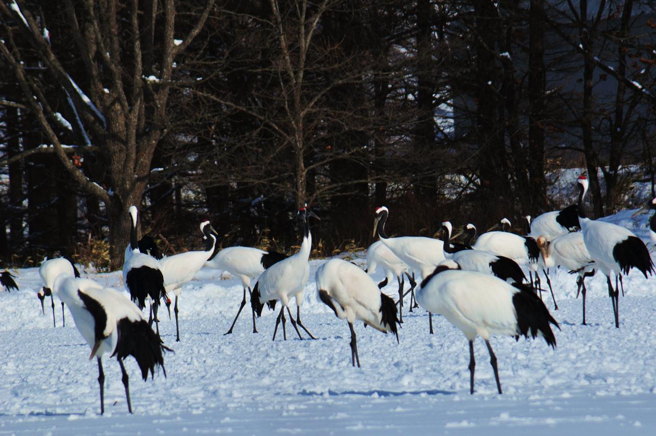 バスを降りると早くもツルの鳴く声が聞こえる。とうとう来たぜ、鶴見台。駐車場には結構な数の車が停まっている。横断歩道を渡り鶴見台へ。いやー久々ですなぁ。今日もタンチョウヅルでいっぱいだ。なかなかにぎやかですな。ツルといえばその昔、肥薩おれんじ鉄道がまだ鹿児島本線だったころ出水まで見に行ったことがある。あちらの方が広大な田んぼの中にうようよいるので見た目は圧巻だけどツルといえばやっぱタンチョウヅルでしょ。小ぶりながらもクオリティ的にはここの方が上だと思う。まぁ鶴居の場合、この狭い場所に限らず広い範囲に散らばってるからねぇ。まぁ甲乙つけるような話ではないな。