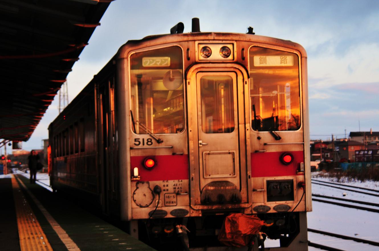 バスから降り足早に駅の中へと入る。乗り換えには10分以上ある。だけど急がなければならない。13:03分に札幌からの特急スーパーおおぞらがやってくるのだ。そいつは昨日僕らが乗ってきた列車である。本日は12月31日。年明けを故郷で過ごす人たちを満杯に積んで来るに違いない。そして多くの人たちが根室行きの普通列車に駆け込んでくるだろう。その9割方が根室まで乗り通すだろう。チビ連れで満員列車で2時間立ちっぱなしというのは非常に厳しい。まぁさっきまで「乗れれば御の字」みたいなスタンスだったけどいざ乗れるとなると今度は座席を確保したくなる。人間の欲ってのは果てしないものよ。