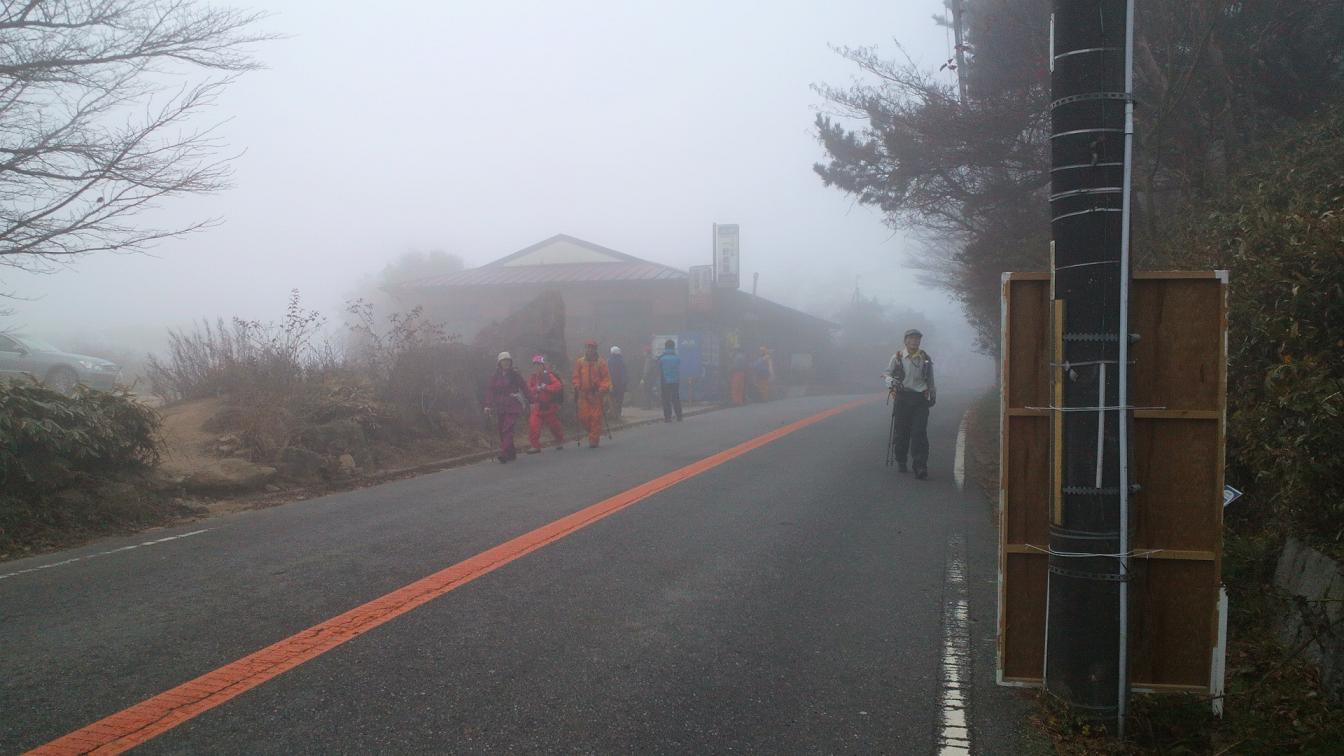 時刻は15時46分。所要時間は1時間6分。周りが何と言おうと満足だ。2年前よりも30分近く短縮できた。霧が立ち込める中、全縦の人たちと話をする。僕が話をしたおっちゃんは通常は5時には宝塚まで下ってるらしい。すげぇ。「今日は不調ですわ」なんて言ってるけど体型や格好からしてまんざら嘘ではないようだ。