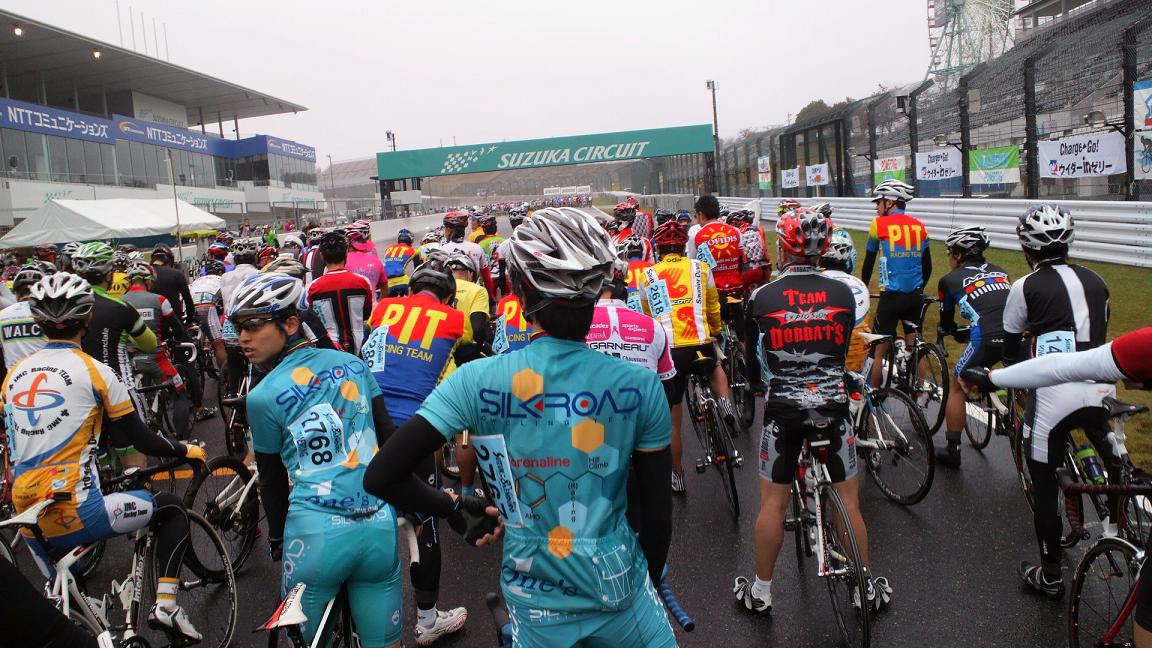 始めの2、3周の間はヘアピンカーブと25Rで必ず落車してる人を見かけた。2周目には僕の前方で落車が発生。高速で25Rのイン側に突入したおっちゃんがスリップしてアウト側に吹っ飛び2人が巻き込まれた。なんかボーリングのピンの様に見えた。人間ボーリング、恐ろしい限りだ。