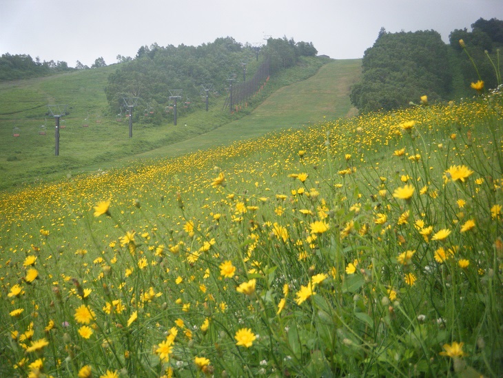 一番下のリフトからロープウェイへと向かう途中からの景色。上の荒れっぷりからは想像できない牧歌的な景色である。