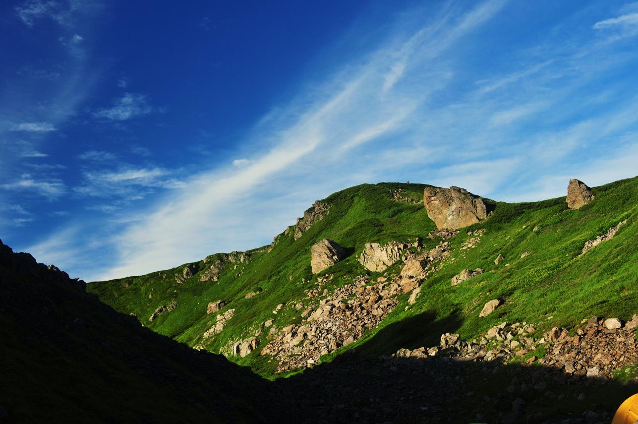 雨も上がり太陽も出てきた。テン場に移動しテント設営。その後早めの夕食。そして18時前、小屋にビールを引っ掛けに行く。しかし営業時間は18時まで。無理を言って枝豆をお皿ではなくビニール袋に入れてもらい生ビールではなく自販機で缶ビールを買いささやかに祝勝会。18時を回るとだんだん薄暗くなってきた。上の白馬山荘はまだまだ日が照っている。ここは山の陰になってるんだなぁ。だんだん寒くなってきたのでテントに戻る。ところで先ほどテントを設営したところで大変なことに気づいてしまった。なんと私、シュラフを忘れてしまったのだ。一緒に持ってきたダウンジャケットをシュラフと勘違いしていた。いやー凡ミスにも程がある。ほんと夏でよかった。とはいえここは標高2700mの高所。夜ともなるとそれなりに冷える。仕方がないのでダウンジャケットと長ズボンを着こんでシュラフカバーにもぐりこんだ。
