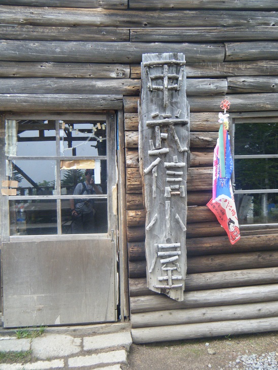 登頂の証拠写真を撮りバッチを買うため甲武信小屋へと下る。小屋に入るも全く人の気配がない。ふと見ると置き書きがあり荷上げのために留守らしい。じゃどうやってバッチを買ったらいいんだと思っていたらお金を入れる箱が置いてあった。おつりがいる場合は勝手にここから取れってことらしい。一瞬「こ、こんなんで大丈夫なんか???」と心配にもなったが「山登りをする人に悪いことをするやつはおらんわな」と納得(つーかそうであってほしいと半分祈りながら)しバッチの代金を箱に入れた。