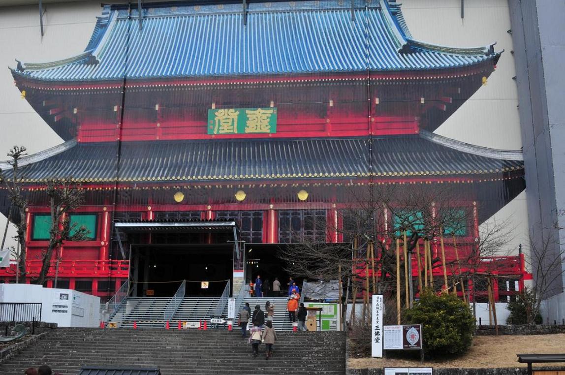 東照宮への階段の登り進んでいく。すると目の前にでっかい建物が目に飛び込んできた。「おぉっ!!」と思ったけど輪王寺の「絵」であった。ちょうどこの輪王寺は本堂の工事中で外観をすっぽりとシェルターみたいなの