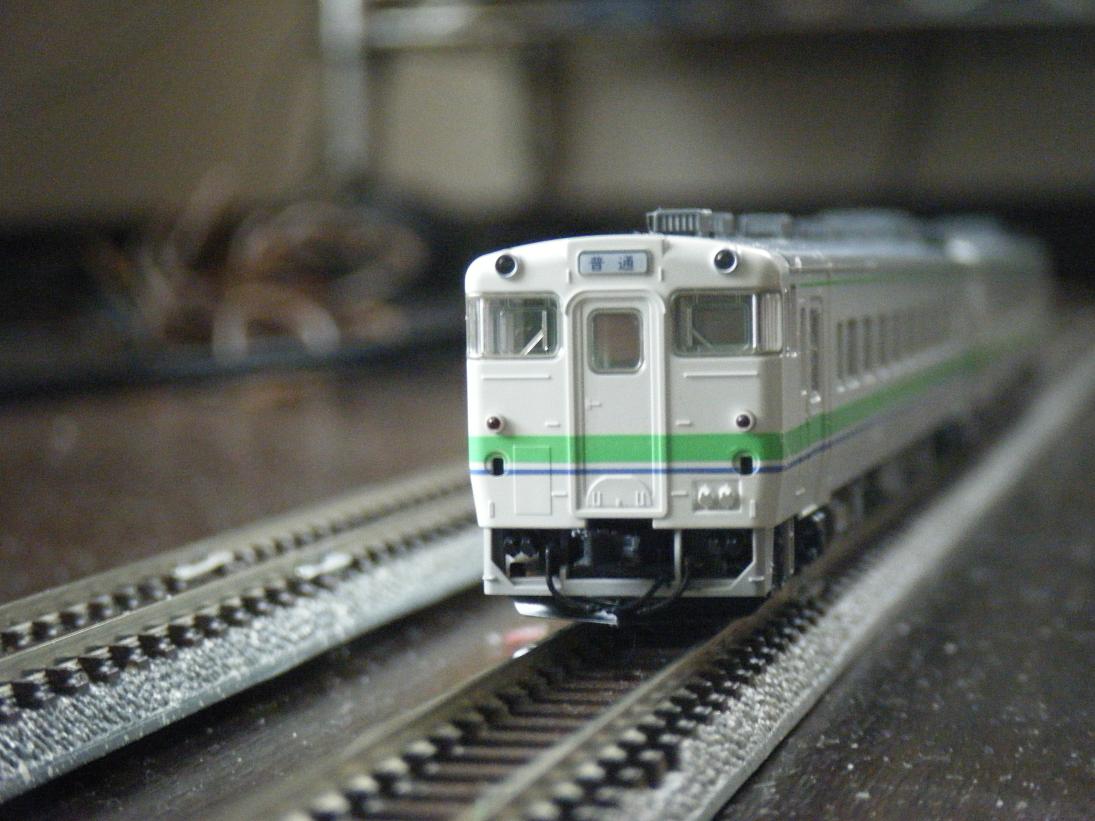 *写真のやつ、いづれもパーツだのシールだのは付けておりませぬ。TOMIXの北海道色のキハ40は最初から列車種別が取り付けてある。写真はライト付けてないけどLED。カプラーはTNカプラーを標準装備。さすがTOMIX。