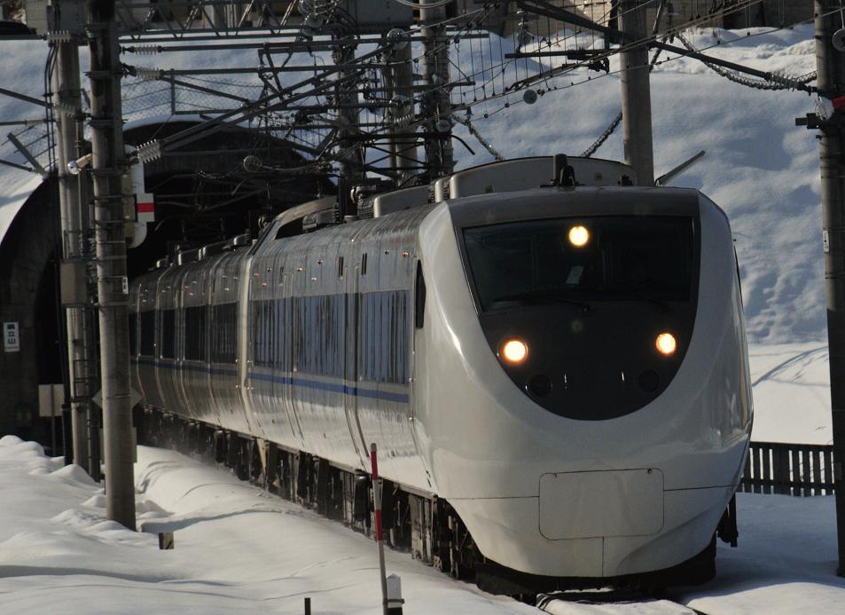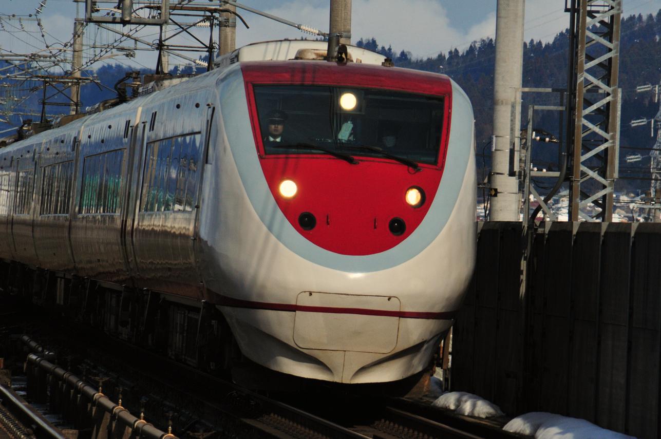 けぬける。まつだいに到着。ここで上りの特急待ち。ホームには「ホーム上は大変危険です。列車が高速で通過するので列車から降りたらすみやかにホームから出てください」との看板が。すげぇ。どんだけとばしまくるんだ。特急が駅に接近。「間もなく2番線を列車が“高速で”通過します」とのアナウンスが流れた。160キロで通過するならこれくらい言っとかなければ。狭軌の規格でこのスピードを出せるんだからやっぱりすごい。まつだいを出発した列車は再びトンネルの中をひたすら高速で駆けぬける。直線だし路盤がしっかりしているので揺れない。まるで新幹線に乗っているみたいだ。関西の新快速のあの揺れとは天と地の開きがある。虫川大杉に到着。十日町もそうだったけどここ虫川大杉も上りホームには多くの人の姿がある。みんな東京方面に帰っていくのか??やってきた上り列車も満員だ。3セクがこれだけ込み合っているのを見ると嬉しくなってしまう。まぁ3セクとはいえ国鉄やJRの赤字路線の引き継ぎというわけではないからやはりこの路線は別格ということにしなければならないだろう。行き違いを済ませ再び列車が動き出す。しかしこの路線踏切が全然無い。とことん高速運行に徹した造りだ。屋外(?)を走る区間が多くなってきたのでGPSで速度を測る。大池いこいの森ーくびき間で103キロ、くびきー犀潟間で109キロを記録した。沿線はどこまでも続く広い広い田んぼ。そして列車はほくほく線の終点犀潟へ。1時間ほどの短い時間だったけどほくほく線は非常に楽しかった。