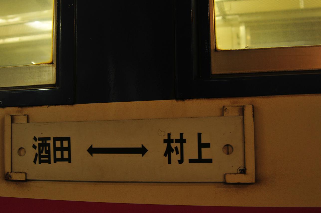 定刻通り22:00、終点の村上到着。新潟行きの列車は5両編成。席を確保しトイレに歯磨きに行く。その後スタンプ。最近は国鉄時代のスタンプが少なくなって代わりに大した特徴もない軽い感じのスタンプが増えてきた。新潟行きの列車に戻る。同じホームの向かい側に酒田行き特急いなほが入ってきた。ガラガラだった。「あ~眠てぇなー」と伸びをしていると向かい側を大阪からのトワイライトエクスプレスが通過していった。
