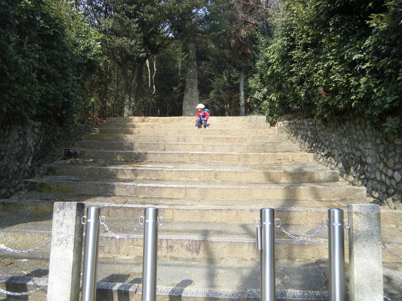 こからこれから登る釣鐘山を望む。花屋敷の傾斜のきつい住宅地を抜け釣鐘山の入り口に到着。ここからが山道だ。僕はこの山へは1度だけ登ったことがある。まぁ登るって程のもんではなくここから釣鐘山にはあっという間に着いてしまうし石切山にもすぐに着いてしまう。そこから満願時に下りる道もすぐに終わってしまうので家から登ってそのまま歩いて帰ってきたけど1000キロカロリーも消費してなかったよ