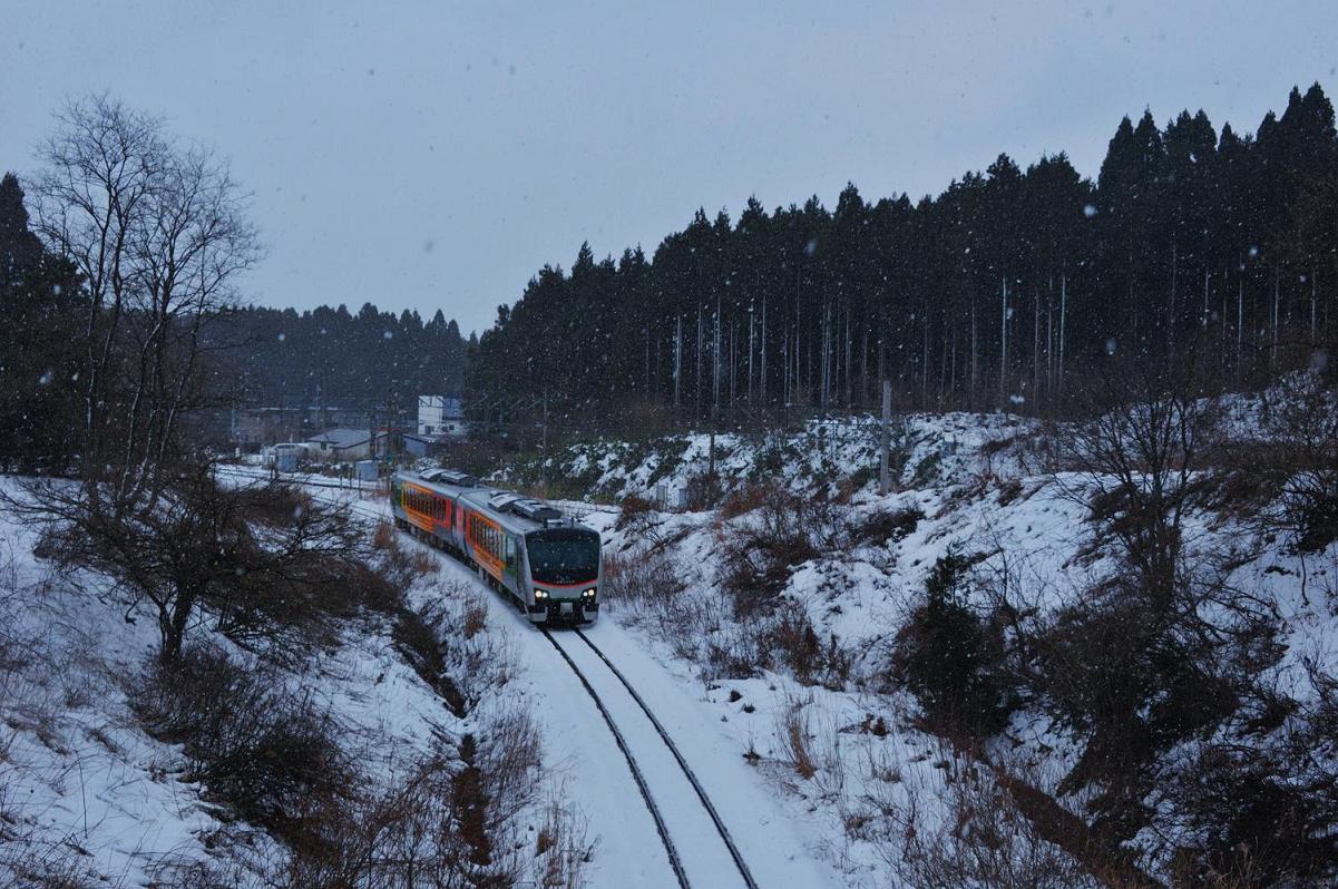 ノスタルジーに浸った後、駅に戻り立ち食いうどんで腹ごしらえ。その後大湊からやってきた快速しもきたに乗り込み再び青森へ向かう。野辺地では雪がしんしんと降り続いていたけれど浅虫温泉の手前からはめちゃくちゃいい天気になった。まぶしくて日よけを降ろすほどの強烈な日差しを受けながら豪快に雪を巻き上げ列車は青森へと疾走した。