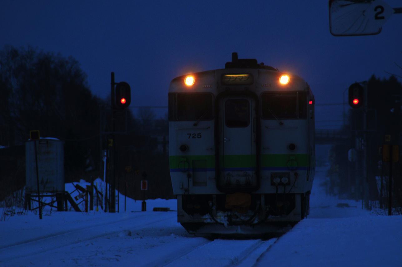 そういや岩見沢に到着しこのおじさんと話をする前のこと。改札を出てトイレに行き駅のスタンプを押し再び改札を抜けようすると手書きの掲示板に「東北地方雪害のためカシオペア、北斗星が運休。大阪からのトワイライトエクスプレスが470分遅れのため発車に大幅な遅れが出る模様」と書かれていた。おいおいどうなってるんだ本州は?北海道はこんなに平和だというのに。てか何?470分遅れって。明日は大湊線を撮った後奥羽線、羽越線で新潟だぞ。帰れるのか?オレ。つーかひょっとして札幌駅にトワイライト停まってるかも。風呂から帰ってまだ停まってたら写真撮っとこ。