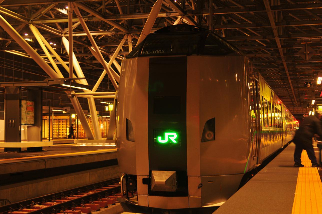 列車は都市近郊を走り札幌駅に到着。札幌には着いたもののだーれも乗ってこない。つーかホームに全然人がいない。終電で到着したかのような雰囲気だ。まだ20時過ぎだぞ。この雰囲気に桑園の風呂屋は大丈夫かと不安になる。元日は休みというオチだけは勘弁してくれ・・・。