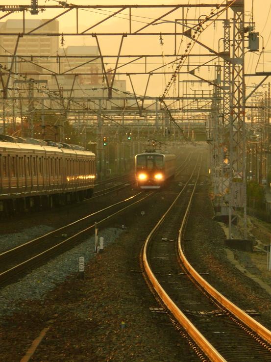 甲子園口のホームの端であーでもないこーでもないと構図を考えながらはまかぜの通過を待つ。そこである事に気がついた。このパナソニックのデジカメ、10倍ズームかと思ってたらなんとその先がまだあったのだ。望遠を10倍ズームにしたあと、さらにテレ側に操作するとまだまだズームに出来るではないか!!一瞬「なんじゃこりゃ??」とひるんだもののすぐに立て直した。「これって光学〇〇倍、デジタル〇〇倍の『デジタル〇〇倍』の方ではあるまいか!?」 いじってみるとMAX40倍までいけるではないか。撮影して見るとそこそこきれいに撮れている(モニター上では)。買ってから3年、真面目にコンデジをいじった事が無いのでこんなのがあるとは知らなかった。こりゃすげーな。28mmから40倍ズームってことは1120mm。これって35mm換算なのかどうなのか知らんが僕持ってる一眼のレンズで一番でかいのが300mm。これに2倍のテレコン付けて600mm。さらに愛機のニコンD300の撮像素子はAPSのCサイズなのでフルサイズに換算すると約900mm。お~こりゃ完全に未知の世界だ。猛烈に感動をしながらパシャパシャやってると時刻は17時前になっていた。「おぉ~。はまかぜちゃん、三宮からこっちに向かってるな」などと思っていたらまたまたある事に気がついた。頭の中が「しまった~!!」で埋め尽くされる。「どわ~!!西日がさらに傾とるやんけー!!日が沈んじゃうよぉ~。」 うかつにも(つーか間抜けすぎるほどに)この時期の日照時間というものを全く考えていなかった。これはヤバい。先ほど感動した1120mmではシャッター速度が遅くて手ぶれがひどくなってきた。この機種では絞りをいじることもできないので感度を800に上げる。するともう鑑賞に堪えないほどのノイズが発生してしまう。400にしても同様だ。まったく自分のアホさ加減に呆れてしまう。 駅に着いた時点で「夕日がきれいだなぁ~」なんて言ってる場合じゃなかったんである。その時点で17時過ぎの光量に気付き西へ西へと向かわないといけなかったんである。三宮を突き抜けて須磨辺りでカメラを構えとかねばならんかったんである!!あーもう遅いよ。つーか沈むな太陽!!早く来いはまかぜ!! 続く。