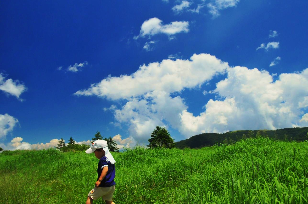 三才駅をあとにし、お次は美ヶ原を目指すべく来た道を引き返す。この美ヶ原をこの旅に組み込んだのにはわけがある。実はこの美ヶ原には昨年の11月にも来ている。しかし駐車場に財布を忘れてしまい王ヶ頭ホテルで登山バッチを買うことができなかったのだ。通常であればひとしきり歩いた後で財布を取りに戻り再びバッチを買うべく王ヶ頭を目指すところなのだがこのときは途中から大雨&強風にさらされて駐車場に戻った時には完全に戦意喪失。まぁいつか来ることがあるだろうということでこの時は撤収してしまったのだ。そして来月、常念岳を縦走するときにバッチだけ買いにここまで来る予定だったのを今回前倒しにしたのだ。ホントのことを嫁に話すといちゃもんをつけられて行き先を変えさせられそうだったのでこのことは今でも嫁には言っていない。まぁ常念から下山してここまで来るにしても沢渡から登山口の中房温泉の駐車場まで行く途中によることになるのでかなりの時間のロスになるところだった。なので今回この美ヶ原でバッチをゲットできたことには大変意義がある。松本ICで高速を降り美ヶ原へ向かう。しかし松本の街中はいつものように渋滞していた。この松本っちゅう街はいつ来ても渋滞している。この地方の中心都市ではあるけれどなんでこんなにも渋滞するのか??まったく困ったものだ。この渋滞を抜け美ヶ原への登りにかかる。くねくねと山道を登りガンガン高度を稼ぐ。車内の温度計で確認するとどんどん気温は下がっていき最終的には下界よりも10度低い22度まで下がった。駐車場につき車を降りると涼しくて風が心地よい。嫁とちびに「あのアンテナがいっぱい立ってるとこがゴールだ。あそこまで行くと牧歌的な風景が広がってて気持ちいいぞぉ~」とそそのかし意気揚々とバッチを買うためのハイキングを開始した。