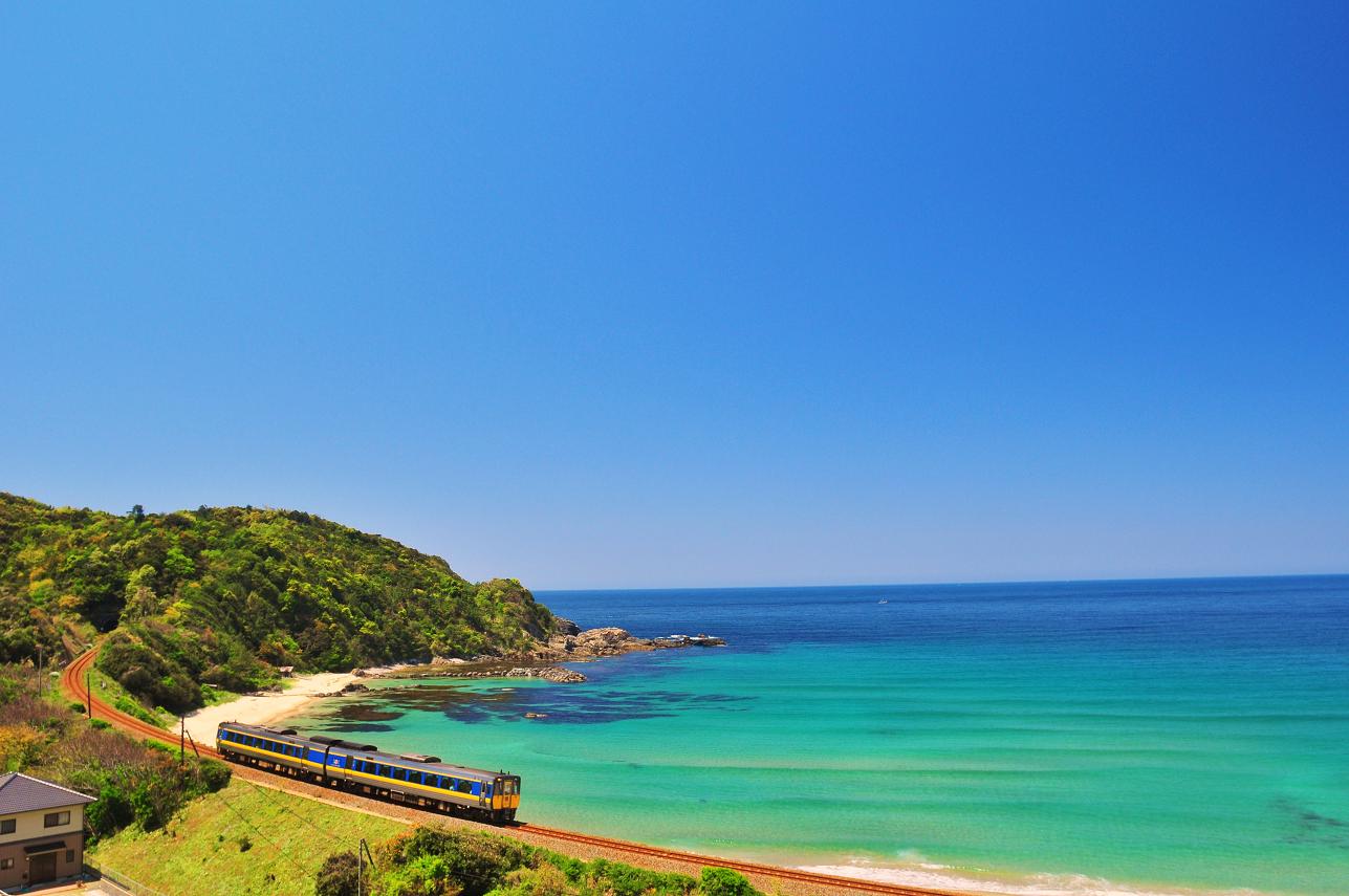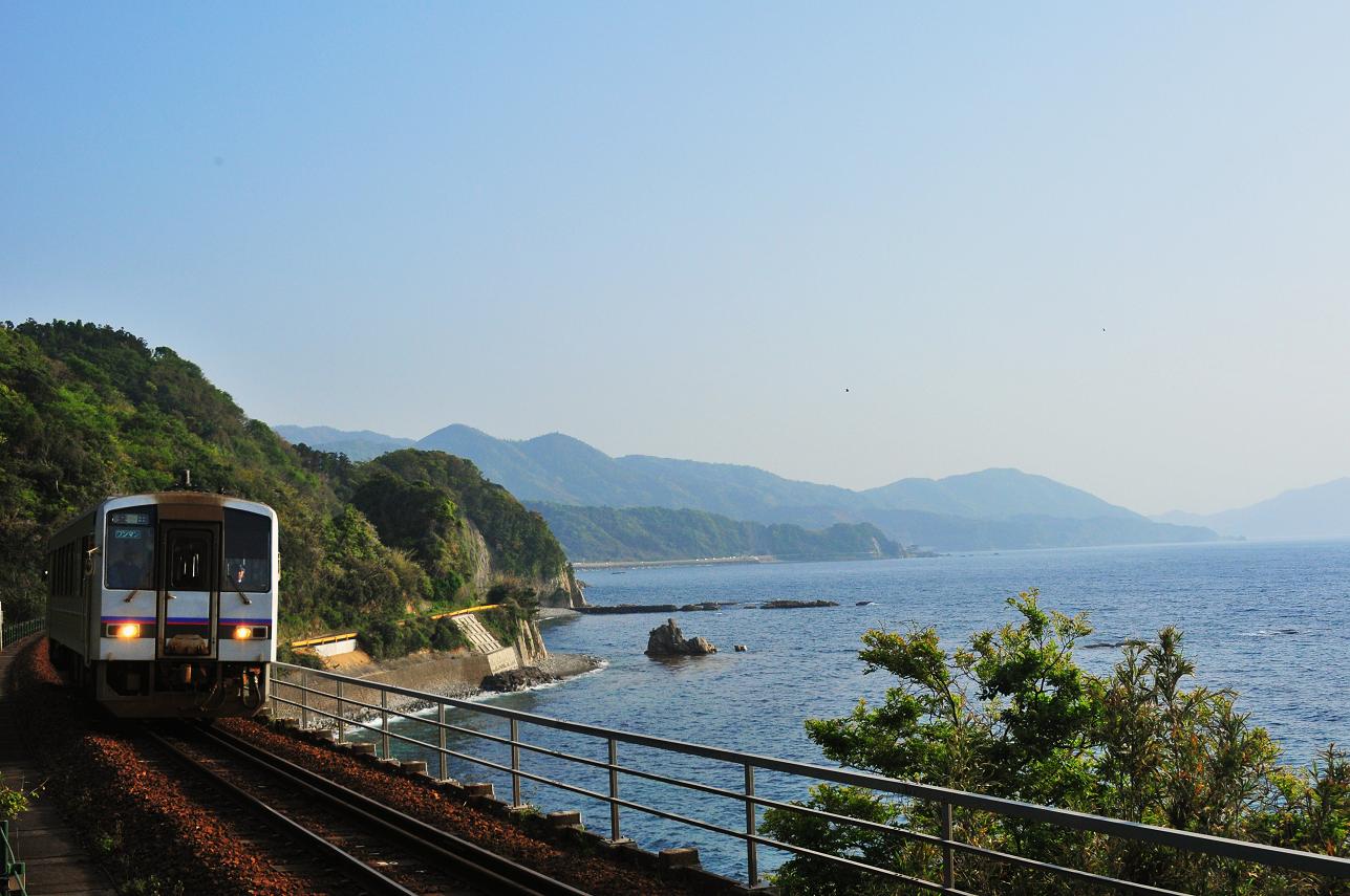 5月3日。天気は晴れ。この日も朝はゆっくり起きてから宇田郷へ向けて出発した。まずは国道9号線の折居駅手前で車を止める。まずは昨日に引き続きゆうひパーク三隅で撮影する。撮ったのは10:30頃通過した下りの特急スーパーまつかぜ1号。その後少し戻り折居駅を越えたあたりで昨日の帰りに目をつけておいたところで撮影。11:39に折居駅で上下線のすれ違いがあるのでこれを撮影する。そして国道9号を宇田郷に向けてひたすら走る。しかしこのあたりの日本海はめちゃくちゃきれいだ。実家から車で1時間圏にこんな素晴らしいところがあるとは知らなかった。車は益田を通過。益田の街は予想外に栄えていた。24時間のネットカフェはあるしマックもケンタもYUMETOWN(ショッピングモール)もある。浜田よりも栄えてるなぁとびっくりした。作りかけで開通している山陰道の無料区間を走る。ちょこっと走っては途切れて信号が出てくる。兵庫の北部の9号線にも無料区間の高速っぽいとこがあるけどそこよりもさらに小刻みに乗り継ぐ感じ。江崎駅付近でちょっと良さげなポイントを発見。付近の道の駅「ゆとりパークたまがわ」で車を止め時刻表をくると10分ほど後、江崎発12:51分の列車があるのでこれを撮影することにする。気がつけば島根を突き抜け山口に突入していた。無事撮影を終え宇賀郷駅手前から海岸沿いに須佐方面に小道を走り目的地のコンクリート橋に到着。僕の持ってる本には山の上からこの橋を俯瞰撮影している写真が載っている。そこには「けもの道をひたすら登り視界が開けたところが撮影地」と書いてある。僕も同じポイントから取ろうと取りつきを探したがどこから登って行けばよいのかさっぱりわからん。この山の上だなというのはわかるんだけどけもの道というよりは完全に道なき道を無理やり踏破しなければ到達できなさそうだ。付近にもっとまともな登り口があるのではなかろうかと捜索したけど分からなかった。唯一「これか?!」という道はあった。それは民家の脇から入っていく道で何軒かの民家の軒先を登っていく道だったけど完全にその家の人達専用の道っぽく完全に他所者の僕が歩くことは何となく憚られた。この道が件の撮影地に続いているのかも確信が持てなかったのでそのポイントはあきらめ橋の下から撮影することにした。14:07分に宇田郷で上下線がすれ違うのでそれを狙う。1時間ほど時間があるので付近でロケハン。上り下りでポイントを変えて撮影したけど結果はイマイチ。当初の予定していたポイントから撮る事も出来ず代わりのポイントからの撮影も満足できなかったので完全に不完全燃焼。実家から近い浜田くらいならまだしもこんなところまで気軽に来ることはできないので(実家からまともに走っても3時間近くかかりそう)決断した。「次の列車を待とう!!」。とはいえ次の列車が通るのは3時間後。さすがにずっとここで待つのもきついので(ここの集落の人から怪しまれそうなので)車で移動することにした。ここから30キロほど走れば観光地の萩にたどり着く。しかし別に萩に行きたいわけではないのでとりあえず9号線を萩方面に流す。しばらく走ると「北長門海岸国定公園」と書かれた眺めのいいところがあったのでここで車を止めた。ここで今日撮った写真をチェックしつ