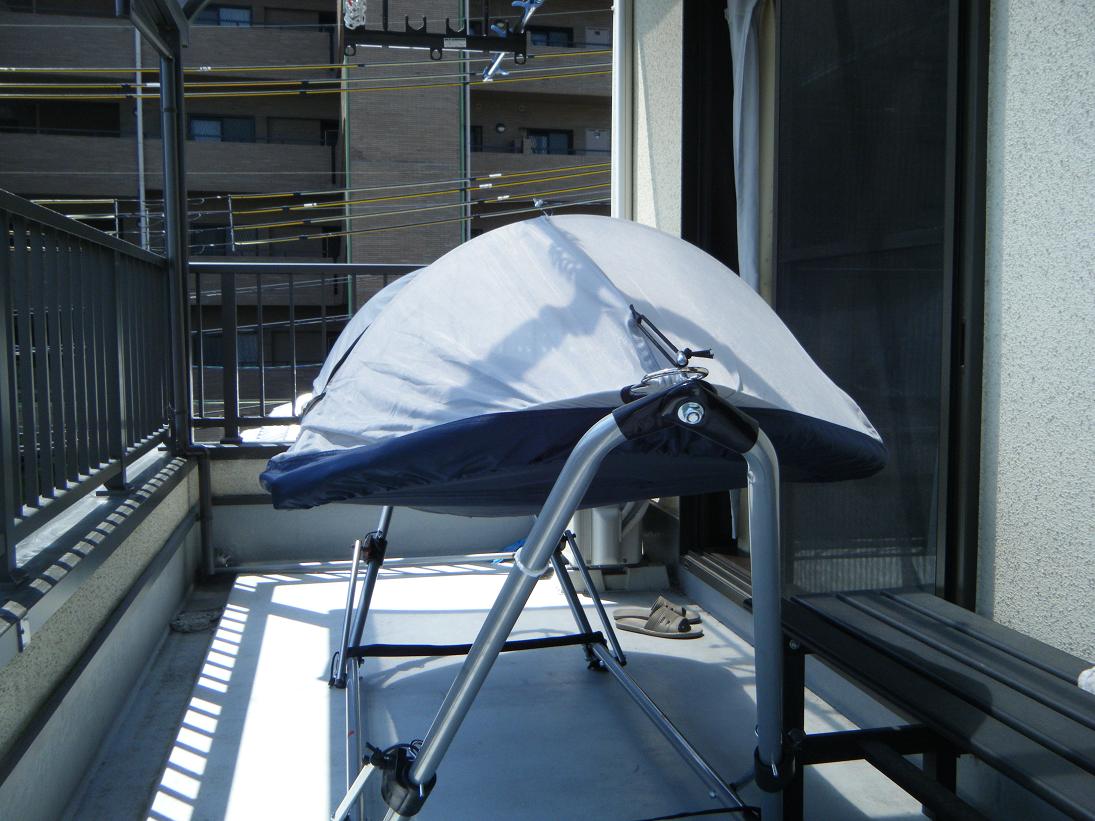 どうしよう・・・」と考えた。結局嫁に「冬のボーナス前借りさせてくれい」とお願いして(夏のボーナスにはもう手をつけてしまった)と頭を下げ購入を決意。翌日の仕事終わりに梅田まで買いに行った。翌4月29日、天気は快晴。ベランダでハンモックを広げる・・・つーか組み立てる。付属の蚊帳も付ける。見た目はなんか病院の担架に似てる。早速寝っ転がる。いやー最高だ。これまではベランダにアウトドア用のリクライニングシートを置いて昼寝するのが好きだった。リクライニングシートもいいんだけど理想というか最終目標はハンモックだった。それが現実になってホントにうれしい。僕はベランダが大好きだ。ベランダで昼寝もすればテントを張って夜