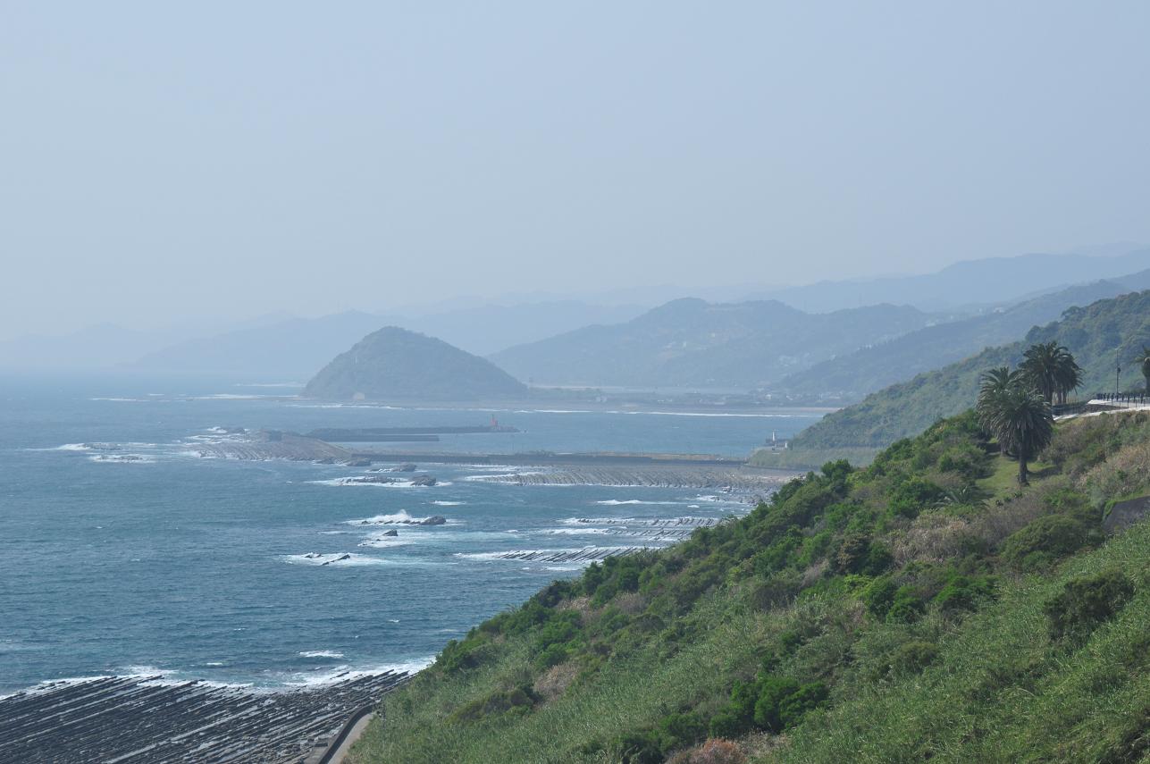レンタサイクルで堀切峠を目指す。しかしすぐ自転車の異変に気がついた。走行音がやたらうるさいなーと思い自転車を止めタイヤを触ってみる。「なんじゃこりゃ!?全然空気はいっとらんやんけ!!!」。まぁ専門の人が整備しているわけでもなく観光協会的なところがついでにやってるような感じなんでしょうがないとは思いつつも「くそぉ~!!!!」。戻って空気を入れるにしても時間がもったいないのでこのまま進む。次の駅、折生迫をあっさり通過。近いな~。で、気持ちよく走っているとあっという間に堀切峠に到着。近い!!展望は良い。しかし遠くの景色はくすんでいる。ガイド的なものには撮影は順光となる午後がよいと書いてあった。「う~む、まぁ逆光と言えば逆光だな。やっぱ午前中はダメだな・・・」と思っていたが後日このくすみの正体が判明。なんとこのとき隣の大国から大量の黄砂が襲ってきていたのだった。そうとも知らず「う~ん、やっぱ午前中はダメだなぁ~」としきりに悔んでいた。ひとしきり写真を撮り今度はすぐ近くの「道の駅 フェニックス」へ。ここでは記録写真的に数枚