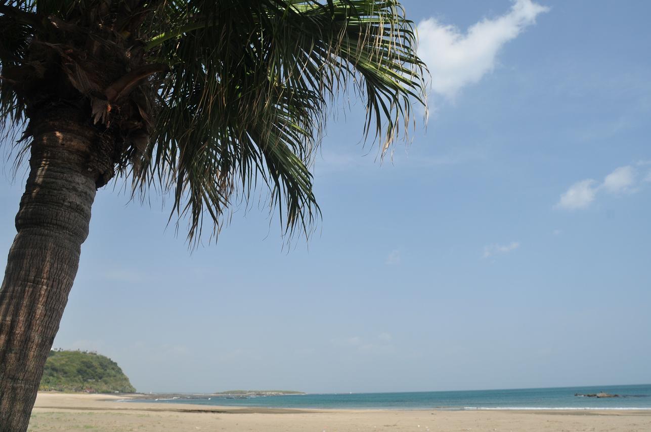 取れたんである。ここまで来ると整備の不備にもほどがある。しかたないのでサドルをお尻の下にひきだましだまし走る。途中、フェニックスの植えられたきれいな砂浜をありここでしばらく過ごす。だーれもいないシーズンオフの南国の砂浜。贅沢な時間だった。で、無事に青島駅に帰還。次の列車まで1時間ほど