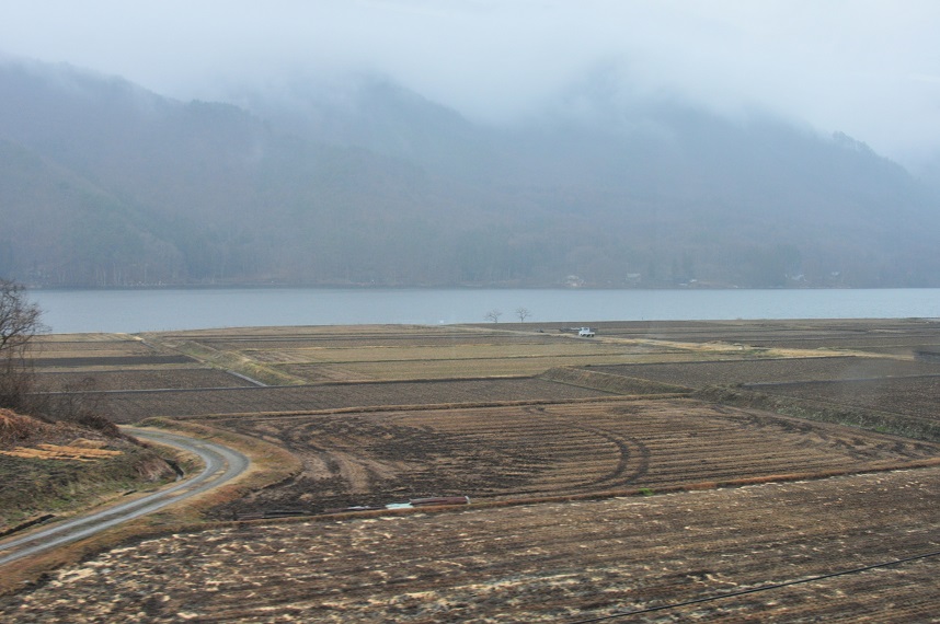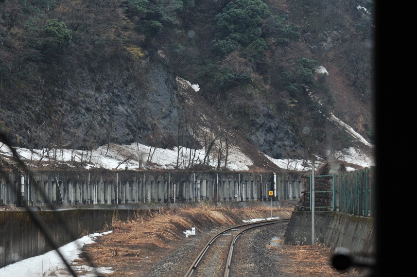 簗場あたりまで来ると外には残雪が現れる。山梨あたりの中央線では桜や桃の花が咲き誇ってたのと比べると非常に対照的。