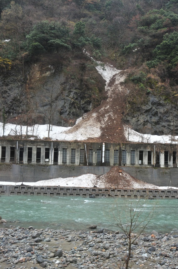 おぉ~!!前方に雪崩(土砂崩れ?)の跡が出現。