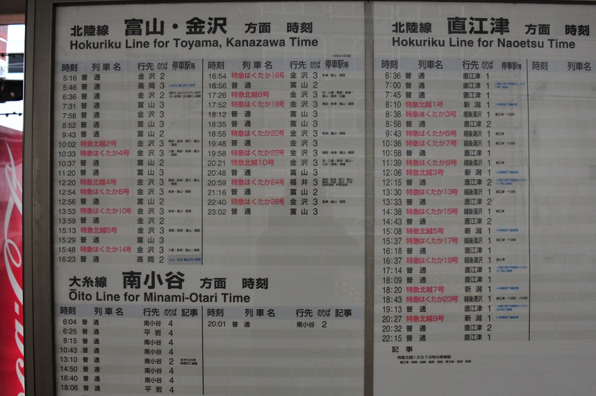そして終着の糸魚川へ。すると「うわぁ~」。巨大な新幹線の駅舎がもう完成間際であった。なんか在来線ホームの横に巨大な壁がそびえるような感じでこれまで細々とやって在来線を握りつぶそうかというくらいの威圧感である。もう来年には新幹線が開業する。なんか古きよき時代が潰されるような寂しさを感じた。