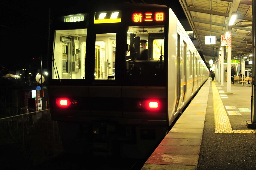 そしてこの旅最後の列車、JR宝塚線、新三田行きに乗り換え。川西池田には0時過ぎに到着。横浜は鶴見から大糸線経由の約18時間半に及ぶ長い1日が終わった。