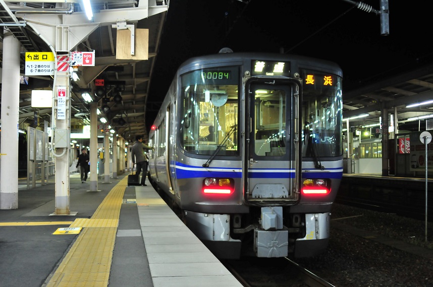 ばびゅーんと21時51分、終着長浜に到着。これまでの移動時間を考えるとほんのワンポイントという感じだ。