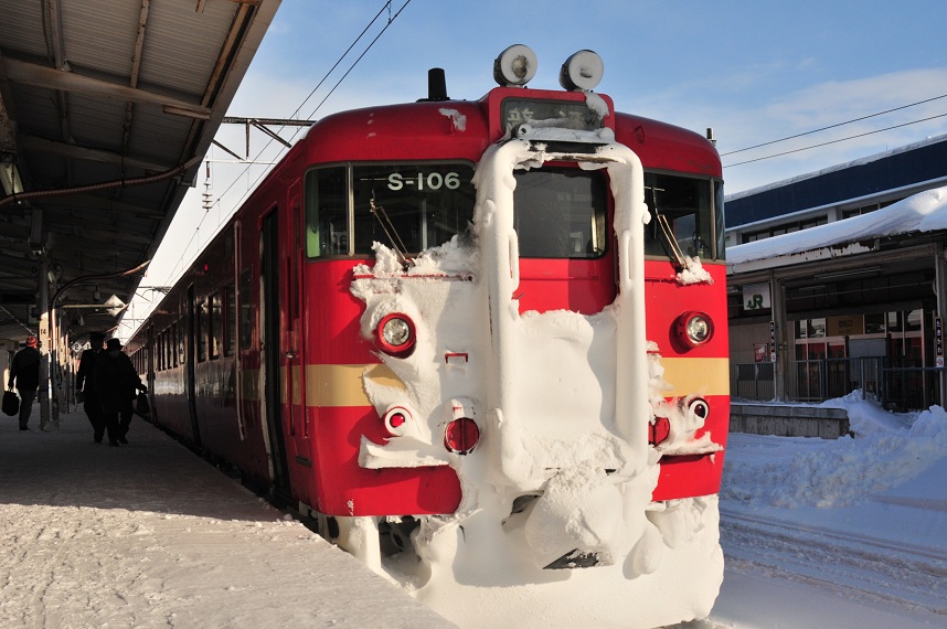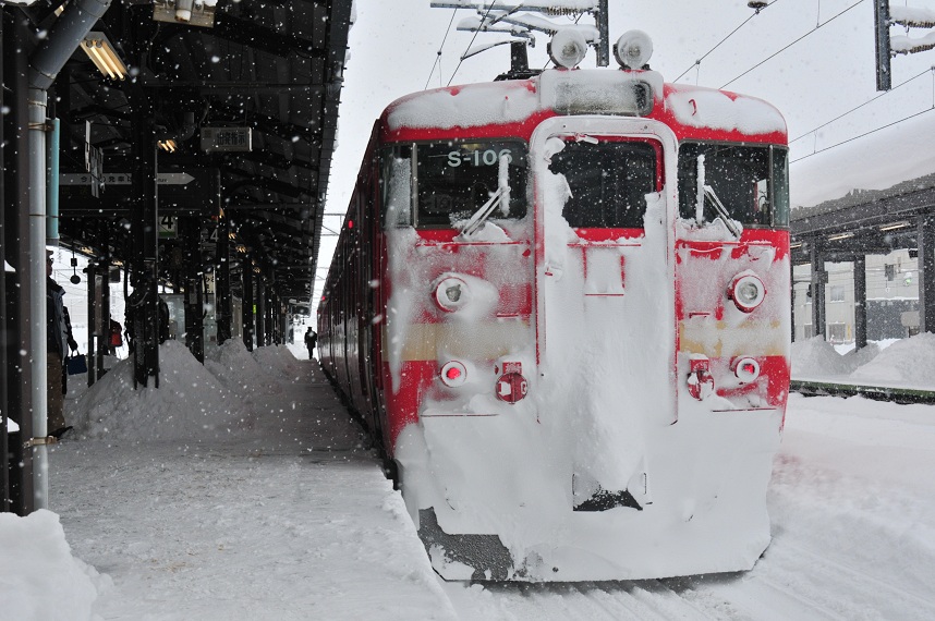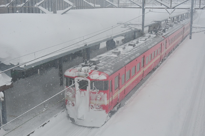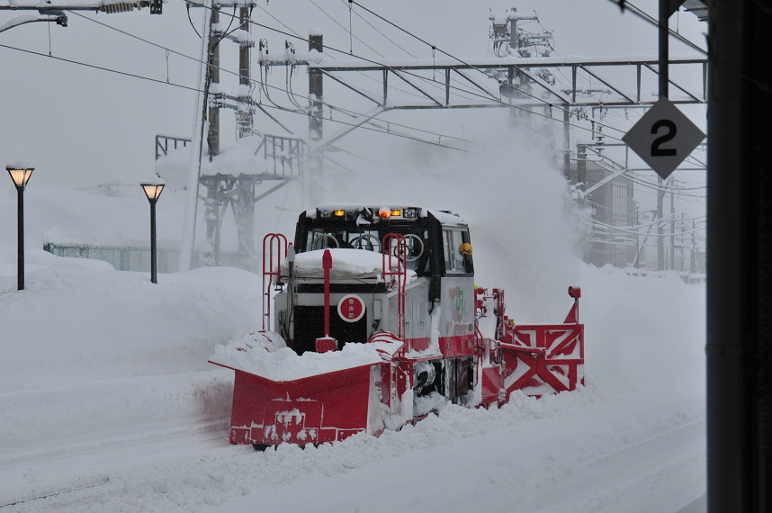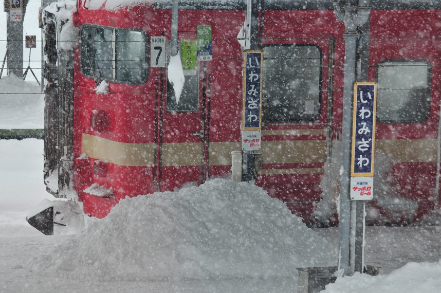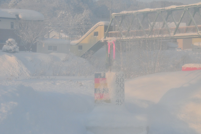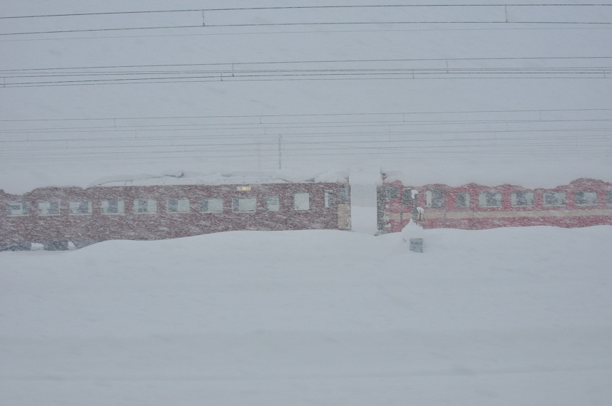列車の窓の高さまでの積雪。ハンパないです。