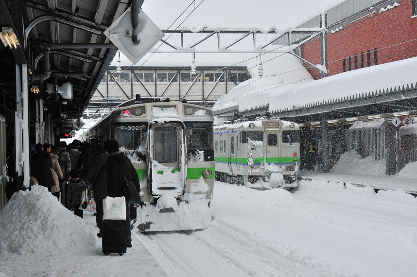 7時20分発の滝川からの根室線帯広行きと7時24分発の富良野線旭川行きの列車を見送って滝川行きの列車に乗り込む。車内には除雪作業を終えた方も乗車していた。雪国で列車を動かすのは大変だ。JR北海道なんてただでさえ輸送人員が少ないのに冬場になると除雪の費用がのし掛かってくる。これは行きの積もらないエリアの人間から見ると非常に余分な費用に思える。痛いよなぁ。俗にいう三島会社のなかでも四国と九州はこれがないだけ身軽だなぁと思う。