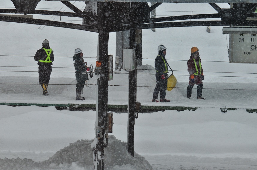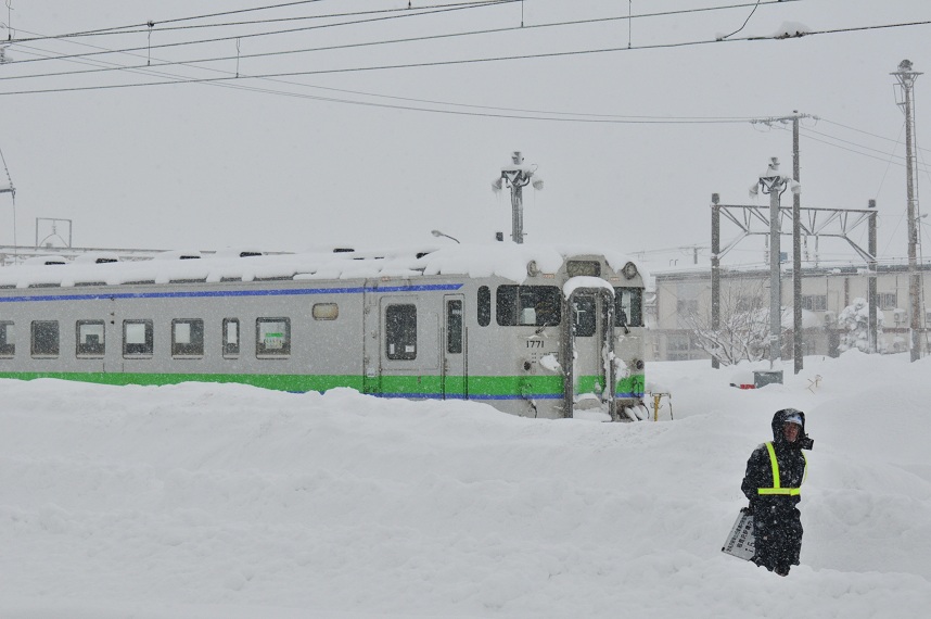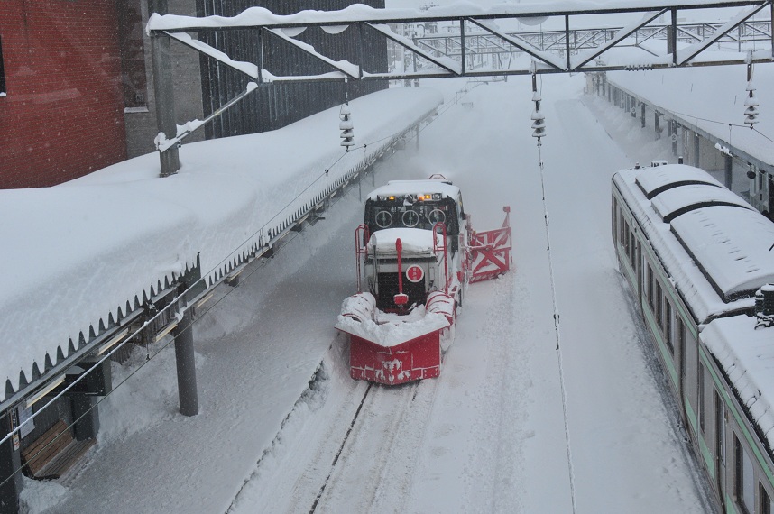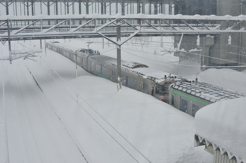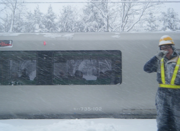 なおも懸命な除雪作業は続けられひとまず手稲行きは発車した。「こんなんで走れるんかいな?」と思ったけど列車は前へと進んでいる。