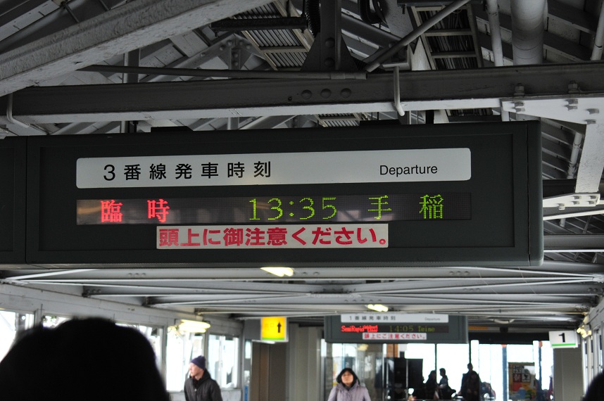 12時50分の江別行きの臨時列車の出発時刻が近づいてきた。僕は室蘭線に乗るので関係ないんだが、なんと12時52分発の室蘭線がこの大雪の影響で運休となってしまった。しかし代行バスを走らせるという。まぁこんな経験もあまりないので江別行きの臨時には乗らずに代行バスに乗ることにした。