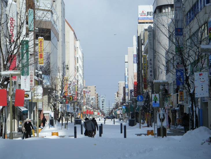寝覚めると11時過ぎだった。テレビをつけるとNHKで竹内洋岳さんの番組をやっていた。おもしろかったのでそのままぼーっと見ていたが「そういえばJRは動き出したんかいな??」と思いフロントの横にあるPCへと向かう。JR北海道のHPを見ると12時以降の運休を伝えるお知らせは無い。「よぉ~し、外出るか。」