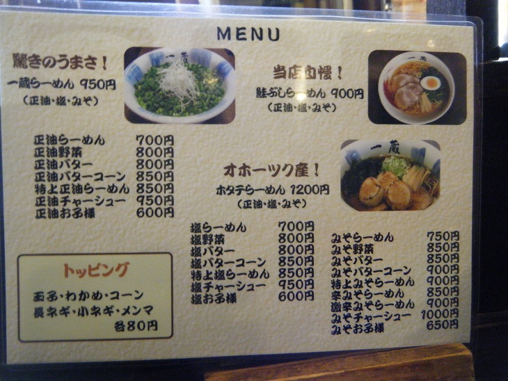 お店に入り席に付きメニューを見る。「またですか・・・」 ここもスープが味噌、塩、醤油のなかから選べるようになってる。なぜだ?なぜなんだ???旭川のラーメン屋ってのは「うちはこれで行く!!」ってのがないのかい??