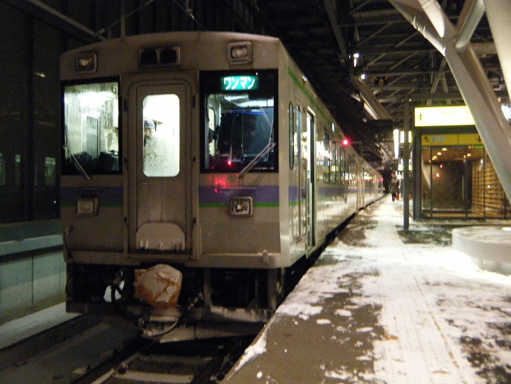 列車は富良野に向けて出発した。しかし窓の外を眺める余裕はない。これからどうするか。時刻表とのにらめっこが続く。旭川始発の滝川発9時06分の岩見沢行きは本日運転取り止めが決定している。となると次の列車は10時10分発の岩見沢行き。これに乗りさらに岩見沢で手稲行きに乗り継ぐと札幌着は11時43分。しかし札幌では11時44分発の小樽行き快速エアポートに乗り継がなければ小樽発12時20分の長万部行きに乗ることができない。これに乗れないとなると次の長万部行きは14時50分で長万部着は18時37分。こりゃ真っ暗で窓の外は見えない・・・どころか小樽発23時30分のフェリーに乗れなくなってしまう。その場合だと18時11分発(着は何時かわからん)の黒松内ですれ違いの小樽行きに乗り移らねばならない。どちらの列車も18時11分発である。ここで乗り移れないとフェリーに間に合わなくなるのでここは運転士氏に話をつけて対向列車に待ってもらわねばならん。つーかその話をする前に札幌での1分乗り換えを何とかせねば。ホームは線路を挟んで向かい側のホーム。まともに勝負したのでたぶん負けるのでここでも車掌氏と話をつけて乗り継げるようにしとかないとマズイ。この列車に乗れなければ函館線の山線を乗り通すことはできない。う~む、フェリーを苫小牧から小樽に変更したのは結果的に間違いだったのかもしれない。つーか完全に結果論なのだが旭川に宿を変更したのが失敗だったのかも。当初の予定通りにしておけば札沼線は夜の乗車となるけど留萌線、札沼線、函館線の山線のすべてに乗ることができた上に今頃はフェリーのベットの中でぐーすか寝ていただろう。まぁ結果論ではあるが・・・。