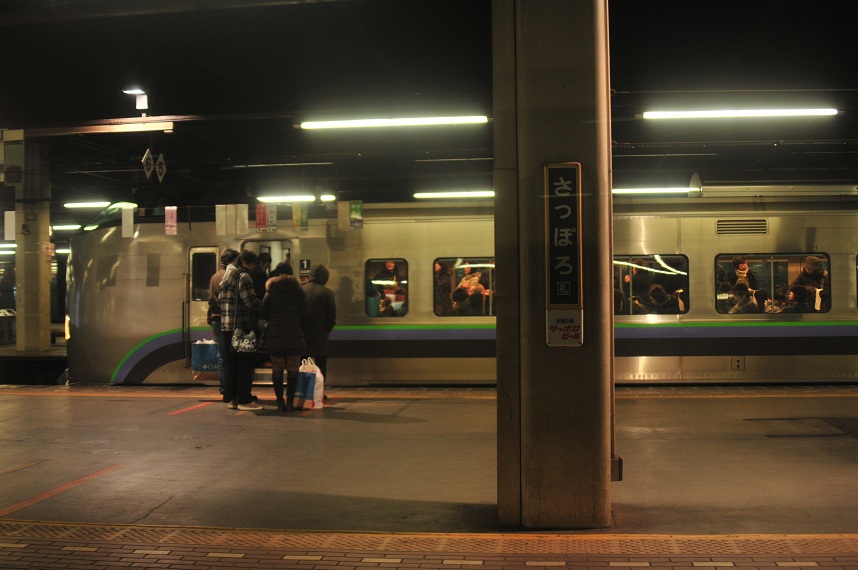 向かいのホームには16時発のスーパーカムイが停車中。さすがに正月。かなり混雑している。